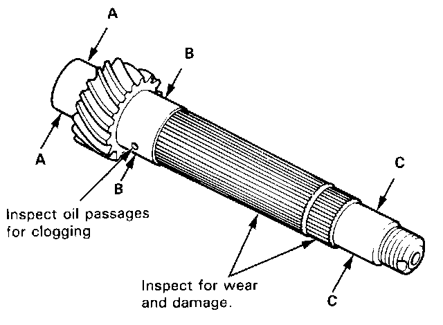 1. Measure the countershaft at points A, B and C.