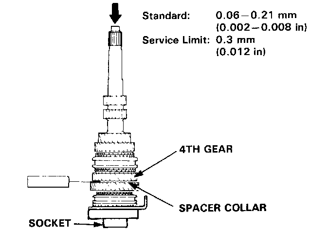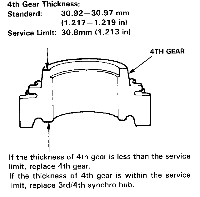 If the thickness of 4th gear is less than the service limit, replace 4th gear.