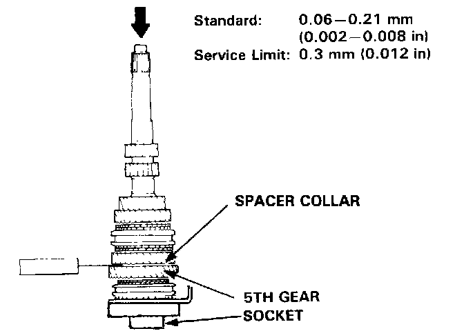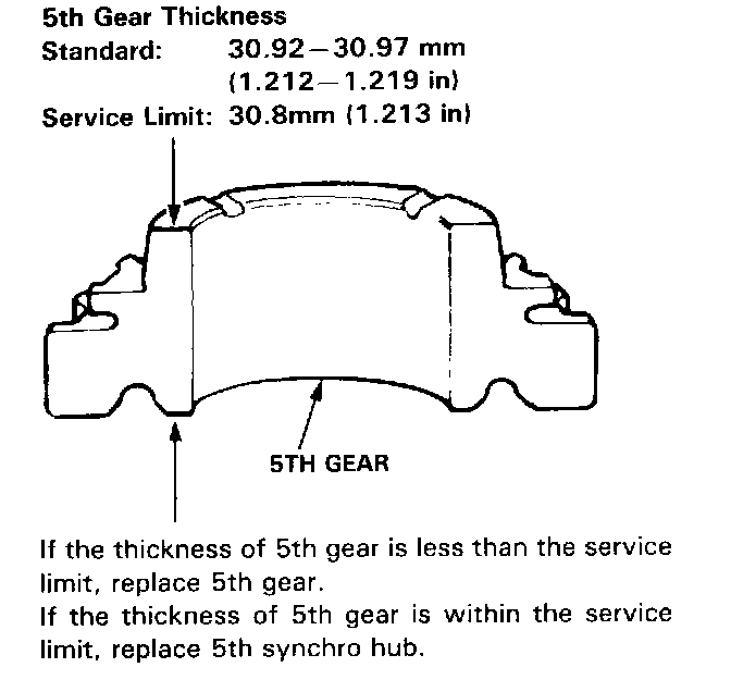 If the thickness of 5th gear is less than the service limit, replace 5th gear.