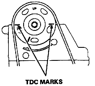 1. Set No. 1 piston at top dead center with mark on camshaft pulley at top and TDC groove on back of pulley aligning with cylinder head surface. Also, distributor rotor should point toward No. 1. plug wire terminal.