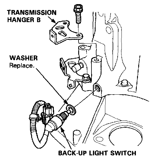 NOTE: Place the clutch housing on two pieces of wood thick enough to keep the mainshaft from the hitting the workbench.1. Remove the back-up light switch.