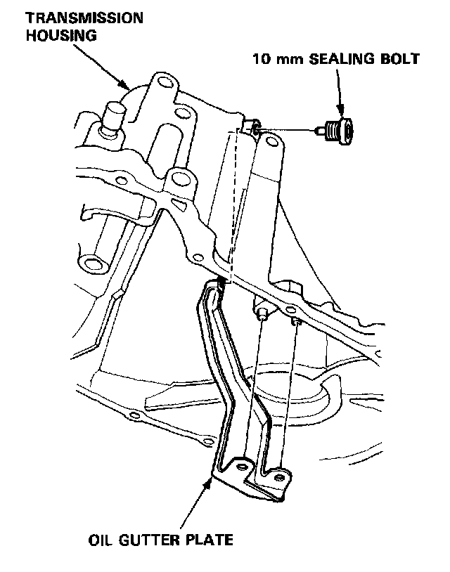 8. Remove the 10 mm sealing bolt and oil gutter plate.