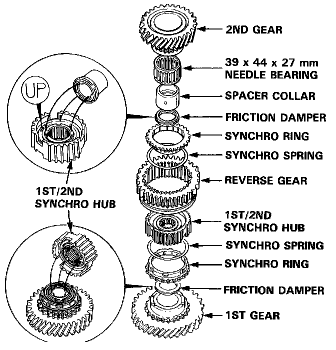 NOTE: Check that the finger of the friction damper are securely set in the grooves of the 1st/2nd synchro hub.