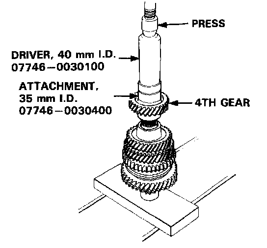 5. Install 4th gear using the special tools and a press as shown.