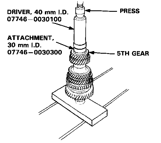 6. Install 5th gear using the special tools and a press as shown.