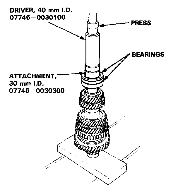 - When installing the 3rd, 4th, and 5th gears, support the shaft on steel blocks and install the gears using a press.