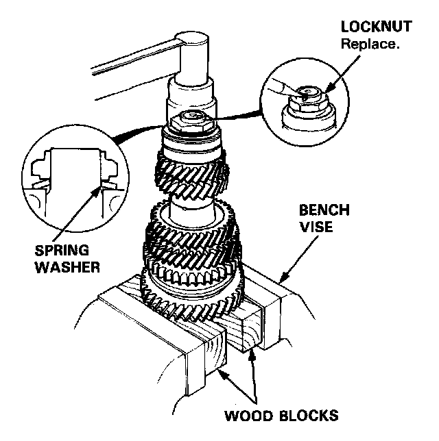 8. Securely clamp the countershaft assembly in a bench vise with wood blocks.