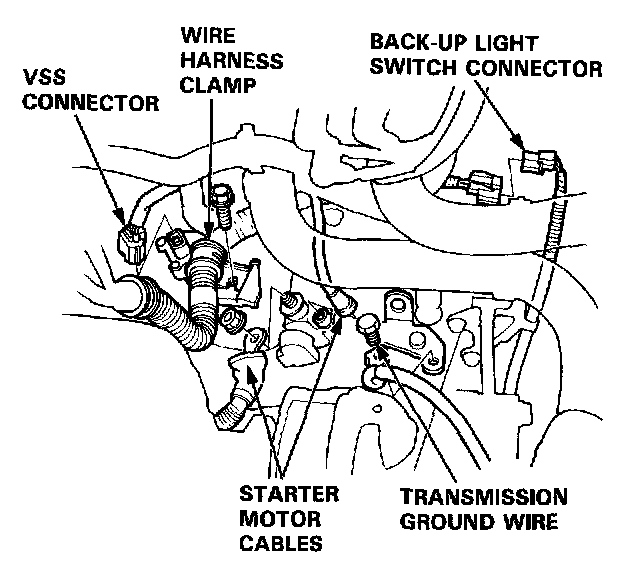 6. Disconnect the back-up light switch connector and vehicle speed sensor (VSS) connector.