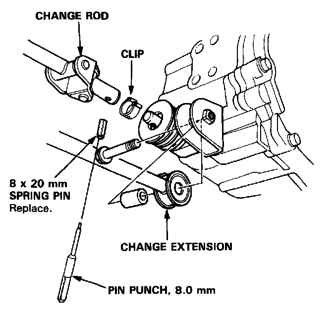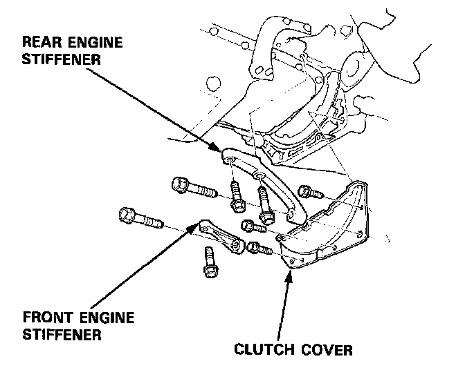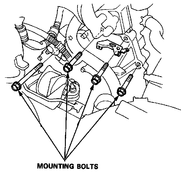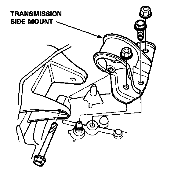 18. Remove the transmission rear mount bolts and transmission mounting bolts.