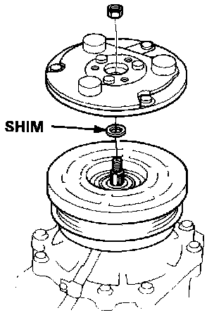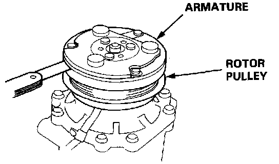 - Turn the rotor pulley by hand and measure the clearance between the rotor pulley and armature plate all the way around. If the clearance is not within specified limits, the armature plate must be removed and shims added or removed as required.