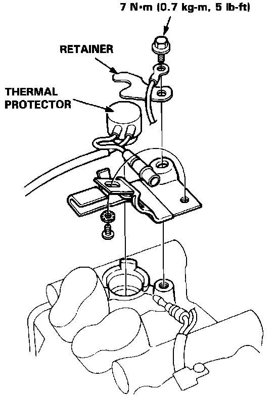 1. Remove the bolt, field coil terminal, and thermal protector retainer.Thermal Protector Replacement: