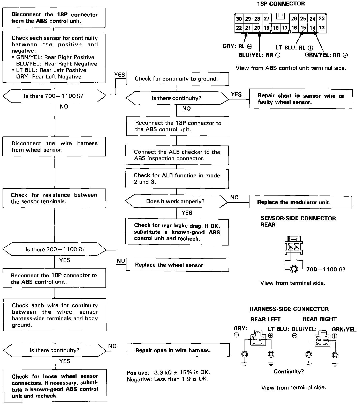 NOTE: If a malfunction is detected, this code appears and the fail-safe function is activated. The ABS indicator light may come ON after restarting the engine until the DTC is erased (by disconnecting the ABS B2 (15A) fuse in the under-hood ABS fuse/relay box for three seconds.)