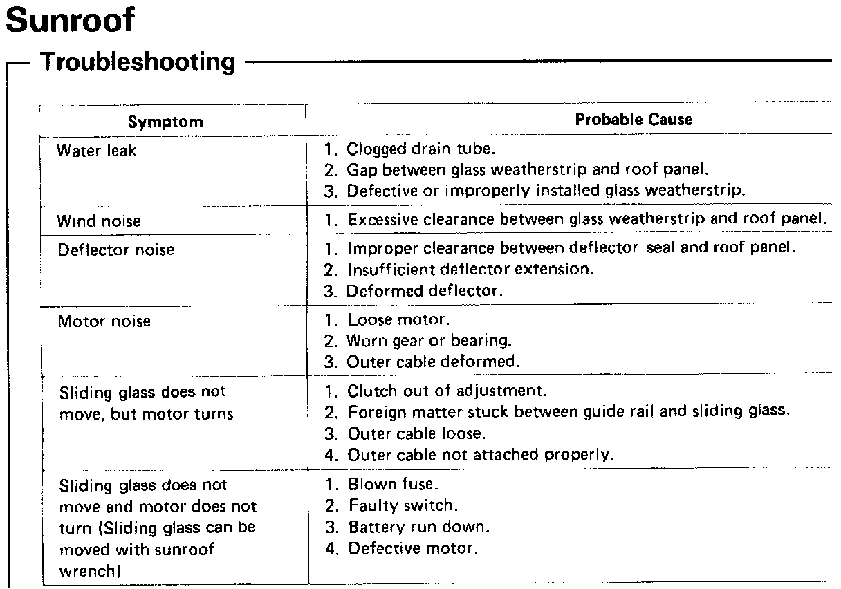 Sunroof / Moonroof: Service and Repair