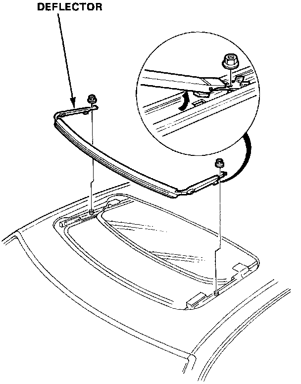 3. Adjust deflector forward or backward so the edge of its seal touches the roof evenlv. Deflector seal should touch the roof panel across entire front edge.