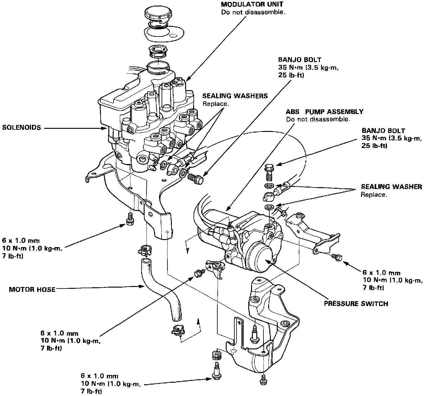 ^ Do not try to disassemble the modulator unit and pump assembly. Replace the modulator unit as an assembly if it is defective.