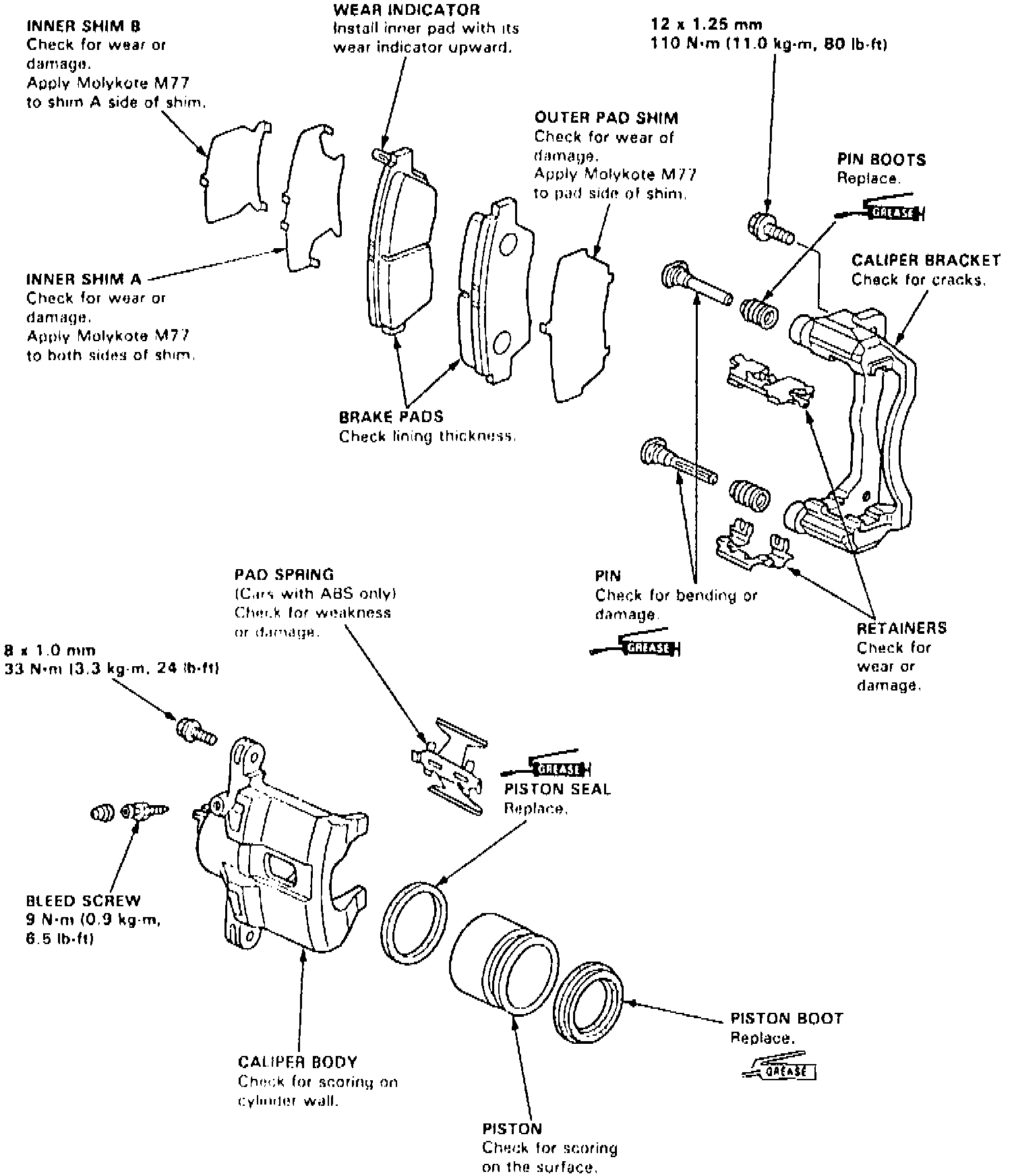 Ensure dirt or other foreign matter is not allowed to contaminate brake fluid. Do not mix different types of brake fluid, as they might not be compatible.Fig. 3 Front Pin Sliding Disc Brake Caliper: