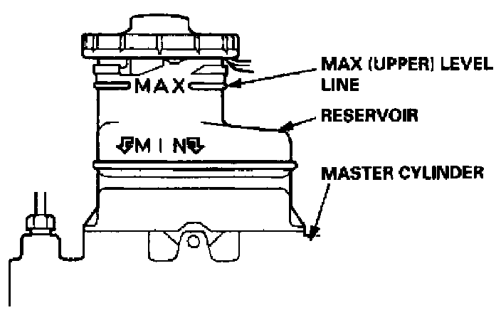 1. Make sure the brake fluid level in the reservoir is at the MAX (upper) level line.