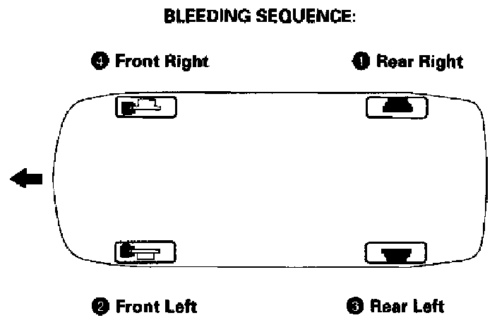 4. Repeat the procedure for each wheel in the sequence shown until air bubbles no longer appear in the fluid.