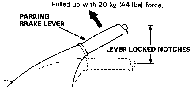 1. Pull the parking brake lever with 44 lbs (20 kg) force, to fully applied the parking brake. The parking brake lever should be locked within the specified notches.