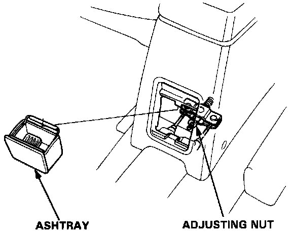 NOTE: After rear brake caliper or shoe servicing, loosen the parking brake adjusting nut, start the engine and depress the brake pedal several times to set the self-adjusting brake before adjusting the parking brake.