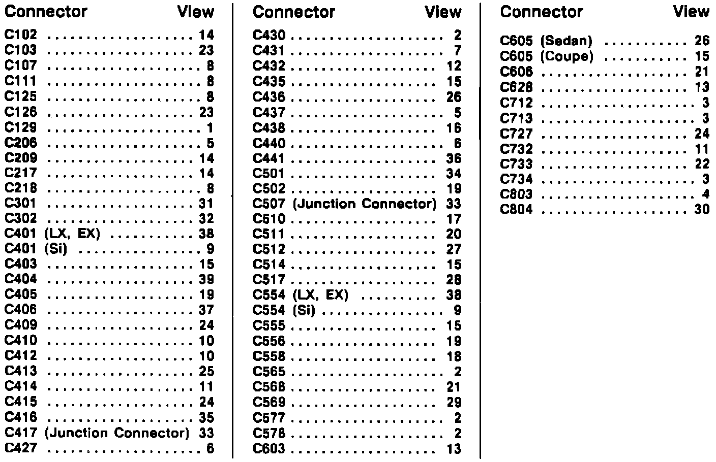 Connector View Index: