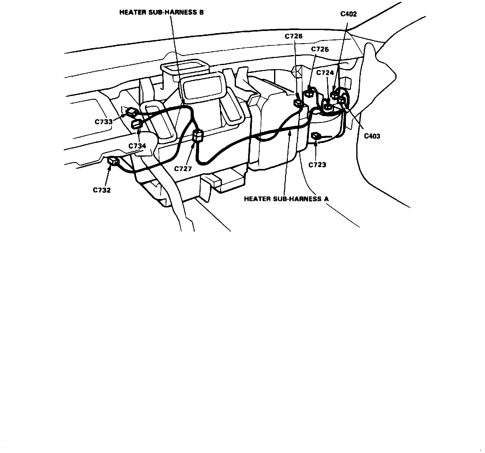 Connector Locations And Wire Harness Routing: Heater And A/C Sub-harnesses: