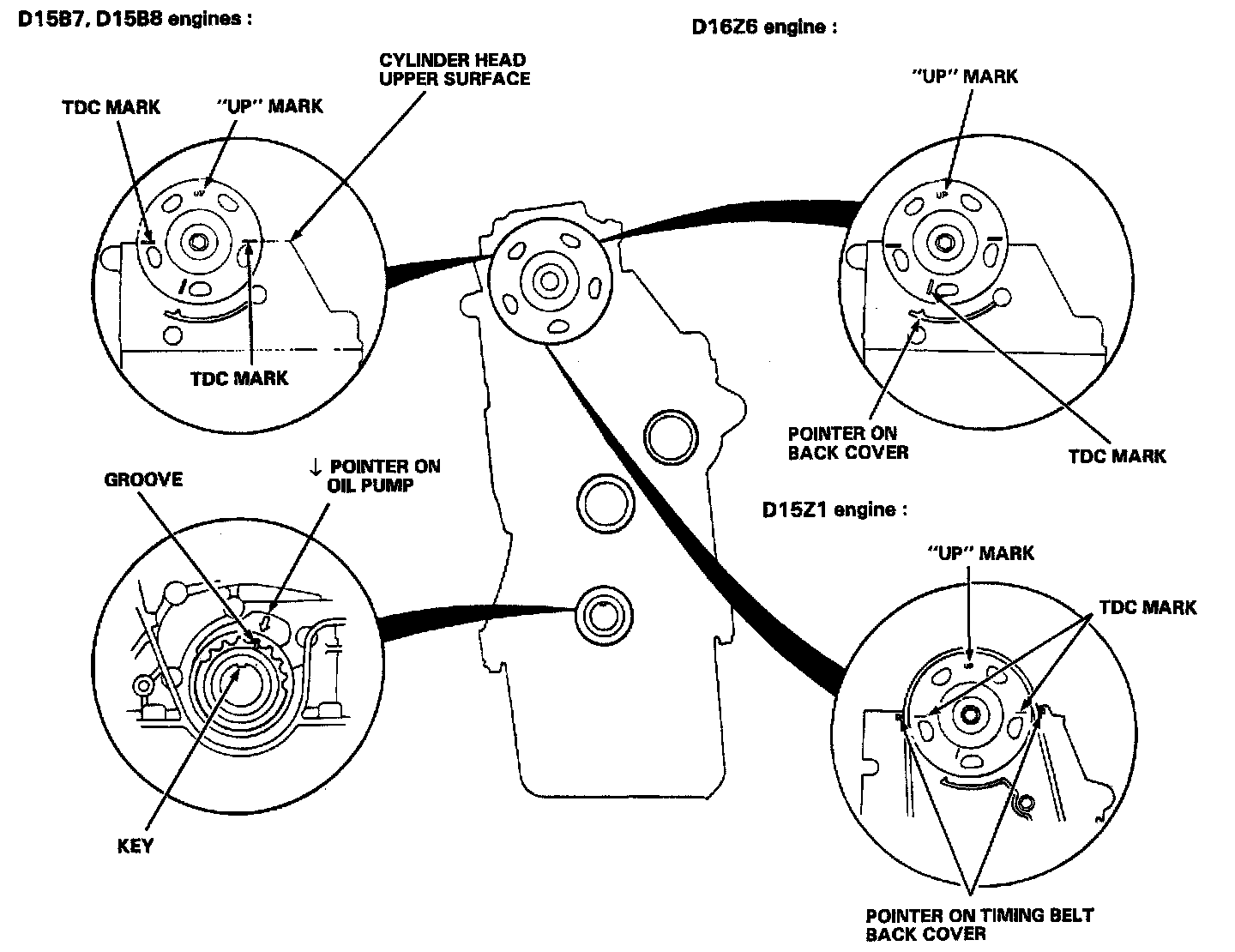 Caution: Incorrect removal or installation of the timing belt can result in damage to internal engine components.D15B7, D15B8 engines