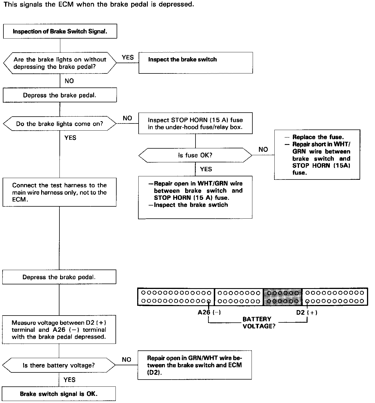Brake Switch Signal Inspection: