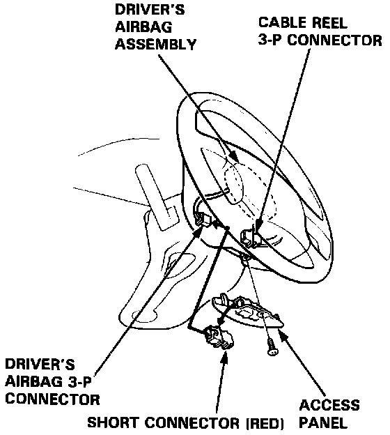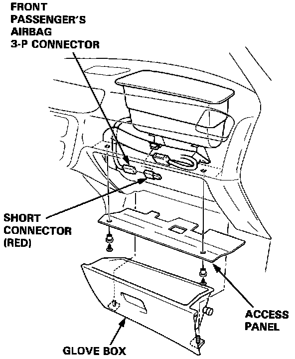 7. Remove and properly store the short connector(s), then reconnect the airbag connector(s) (and reinstall the glove box).
