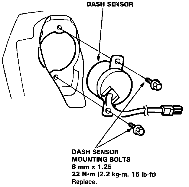 4. Remove the two mounting bolts, then remove the dash sensor.