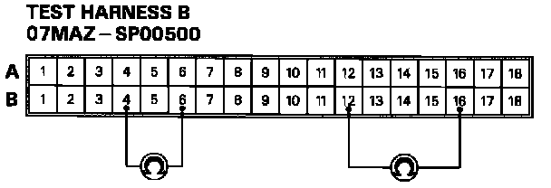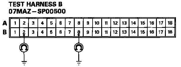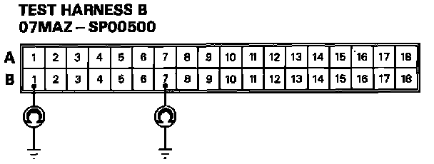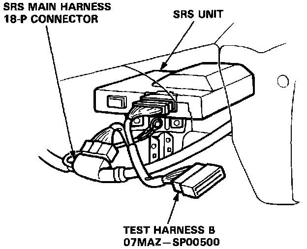 2. Connect Test Harness B (O7MAZ-SPOO5OO) between the SRS unit and SRS main harness 18-P connector.