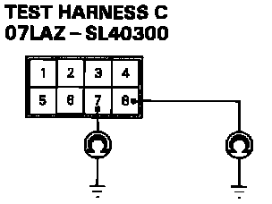 6. Disconnect the cable reel 6-P connector from the SRS main harness, then connect Test Harness C (O7LAZ-SL40300) only to the cable reel side of the 6-P connector.
