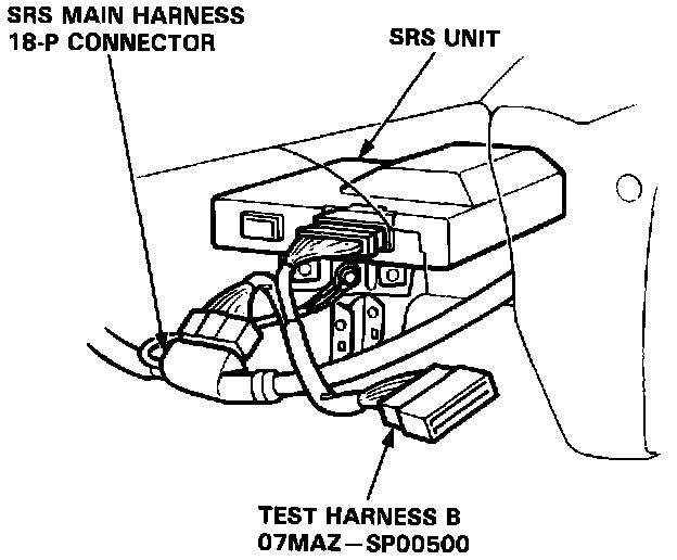 2. Connect Test Harness B (O7MAZ-SPOO5OO) between the SRS unit and SRS main harness 18-P connector.