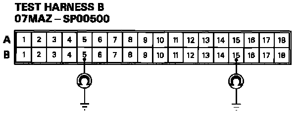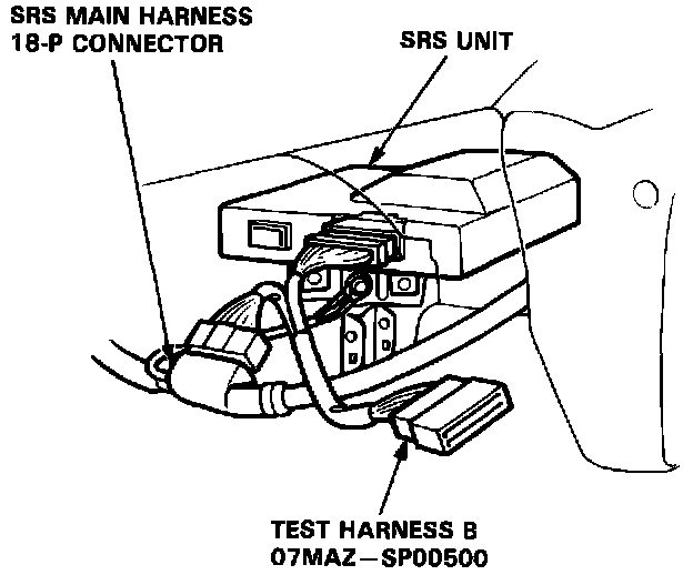 2. Connect Test Harness B (O7MAZ-SPOO5OO) between the SRS unit and SRS main harness 18-P connector.