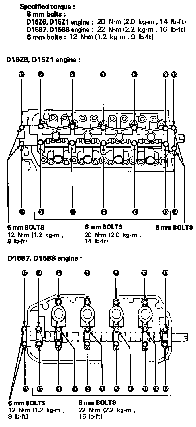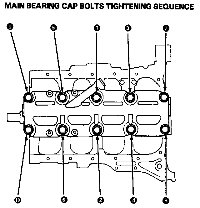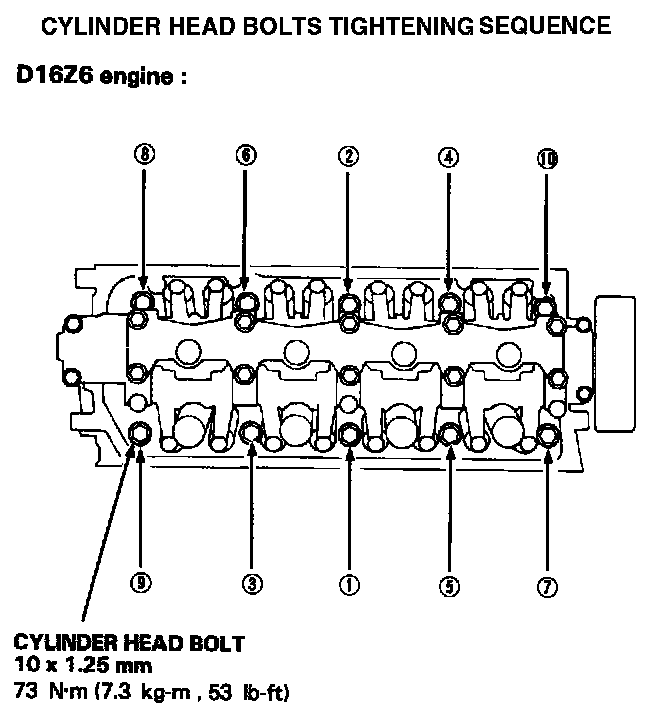 Torque cylinder head attaching bolts in sequence in two steps; first to