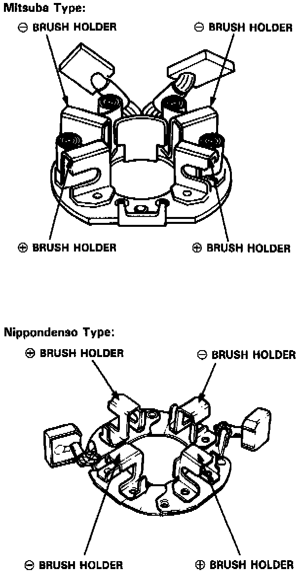 1. Check that there is no continuity between the + and - brush holders. If continuity exists, replace the brush holder assembly.