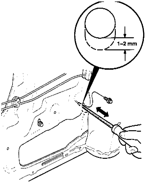 9. Make sure both roller guide mounting bolts are adjusted to the bottom of their slots, then tighten the bolts to 5.8 lb.ft. (8 N-m, 0.8 kg-m).