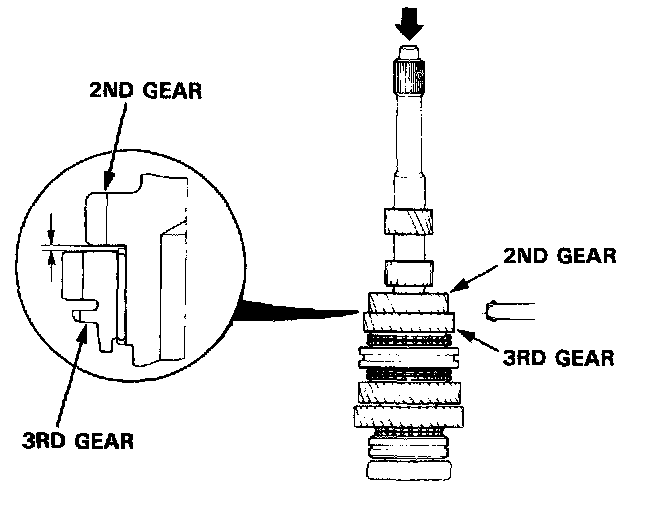NOTE: If replacement is required, always replace the synchro sleeve set.1. Measure the clearance between 2nd and 3rd gears.