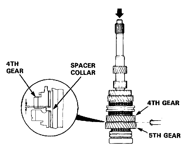 6. Measure the clearance between the spacer collar and 5th gear.