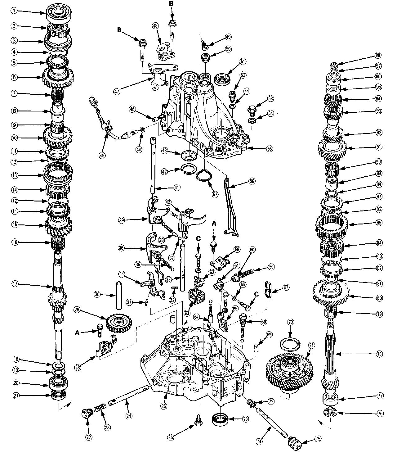 - This transmission uses no gaskets between the major housings; use liquid gasket (P/N 08718-0001).