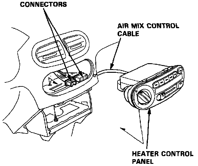 3. Disconnect the air mix control cable from the heater unit, refer to Heating and Air Conditioning/Air Duct Cable/Adjustments.