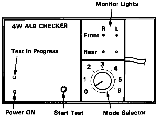 5. With the transmission in neutral, rotate each wheel briskly (one revolution per second) by hand, and confirm that its respective monitor light on the checker blinks as the wheel rotates.