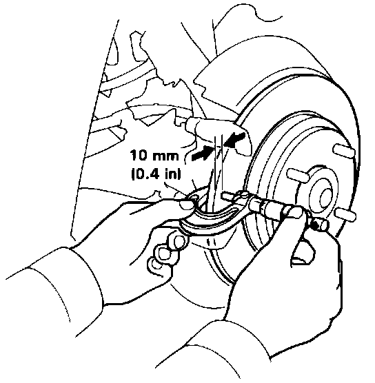3. Using a micrometer, measure disc thickness at eight points, approximately 45° apart and 0.4 in (10 mm) in from the outer edge of the disc.