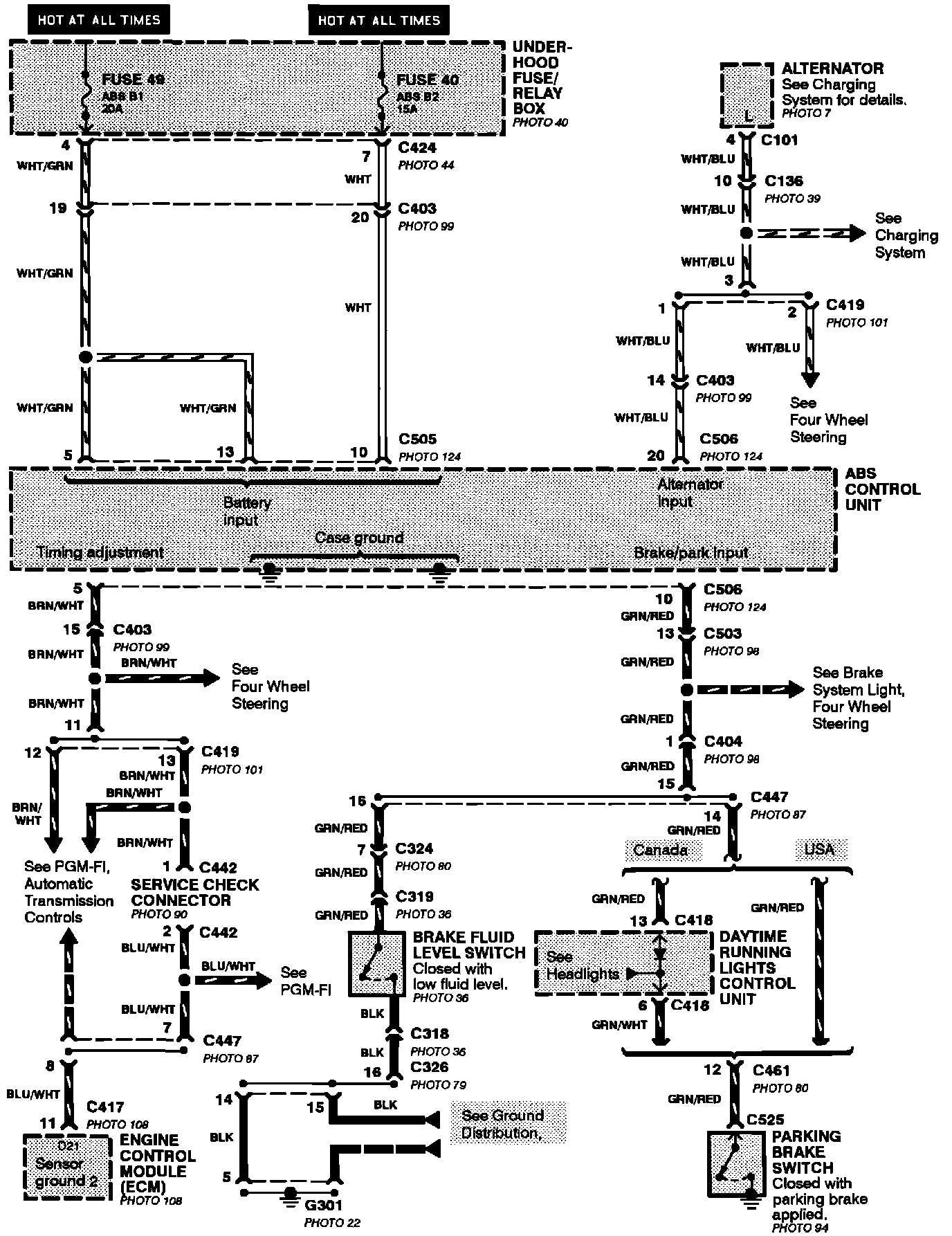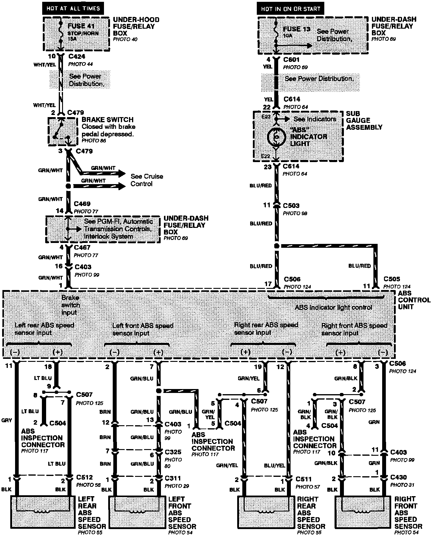 Anti-Lock Brake System (ABS)(With Four Wheel Steering): Power, Brake Fluid Switch And Parking Brake Switch Inputs: