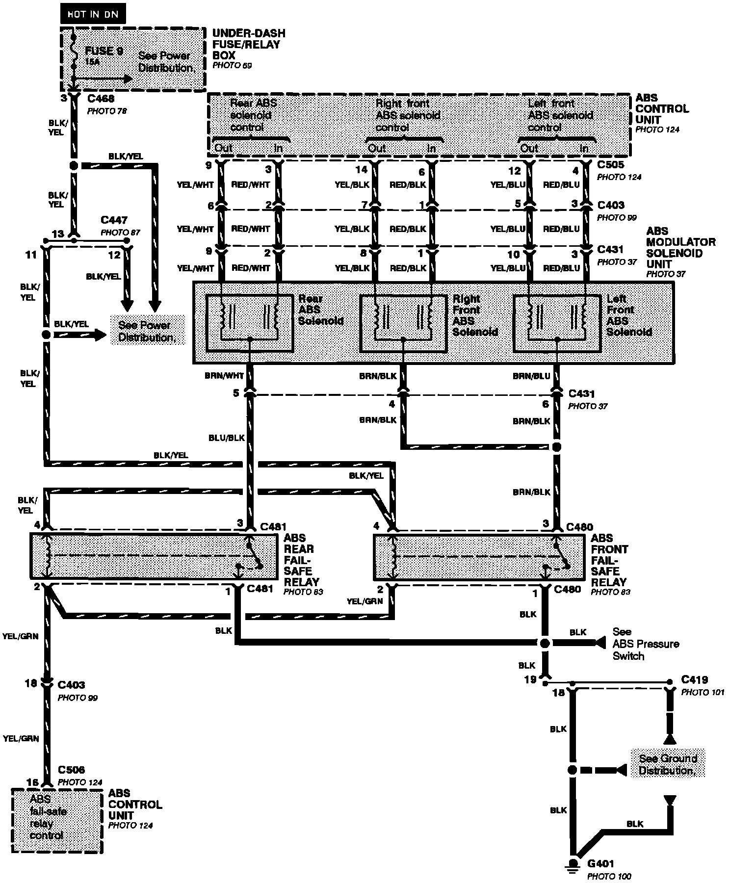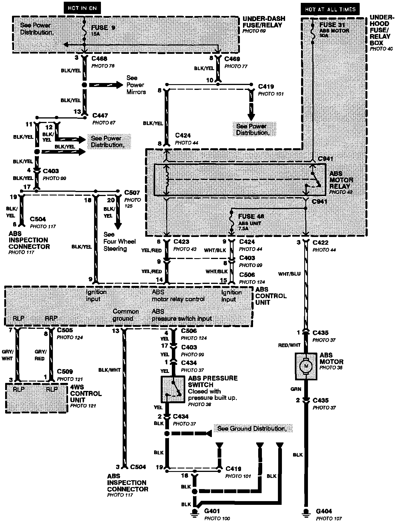 Anti-Lock Brake System (ABS)(With Four Wheel Steering): Motor, Pressure Switch And Ignition Inputs: