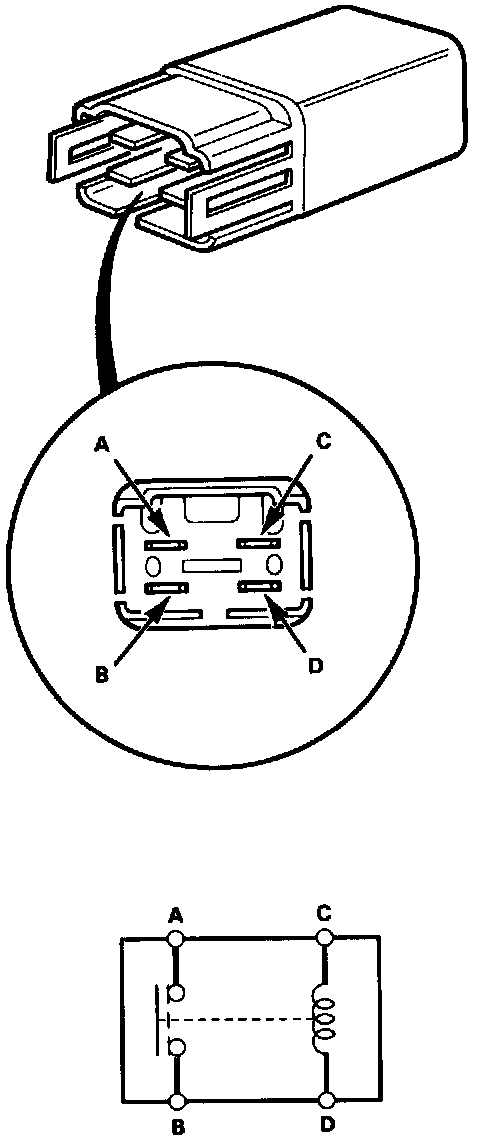 ^ There should be continuity between the A and B terminals when power and ground are connected to the C and D terminals.