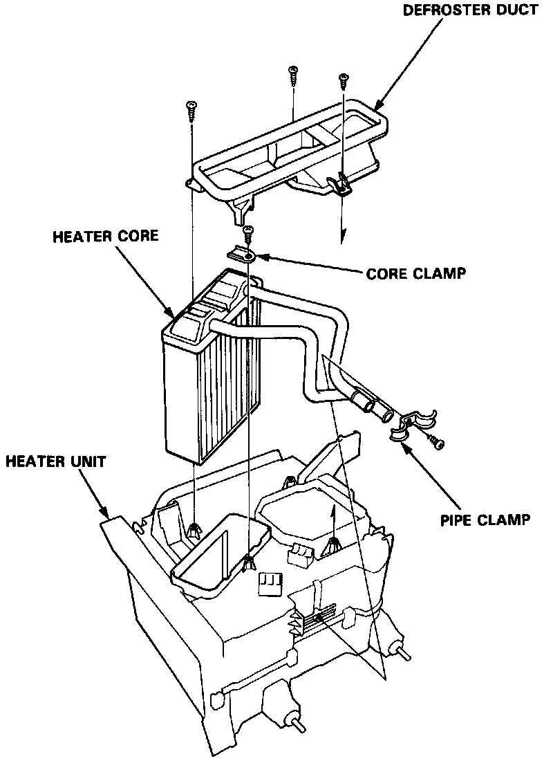 NOTE: Be careful not to bend the inlet and outlet pipes during heater core removal.