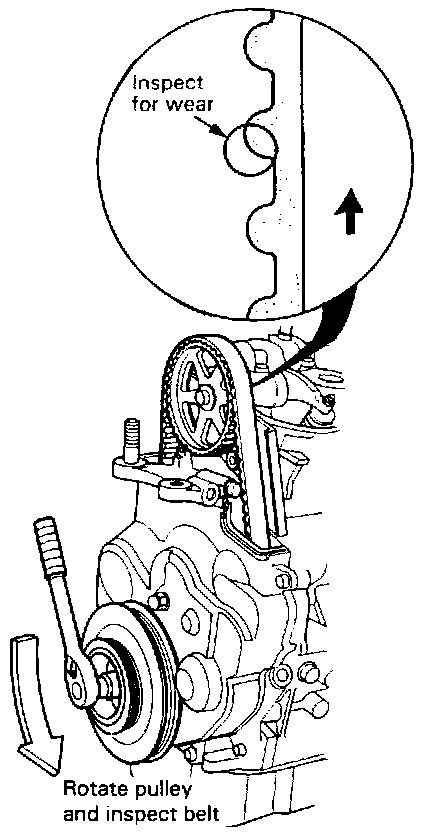 7. Inspect the timing balancer belt for cracks and oil soaking.