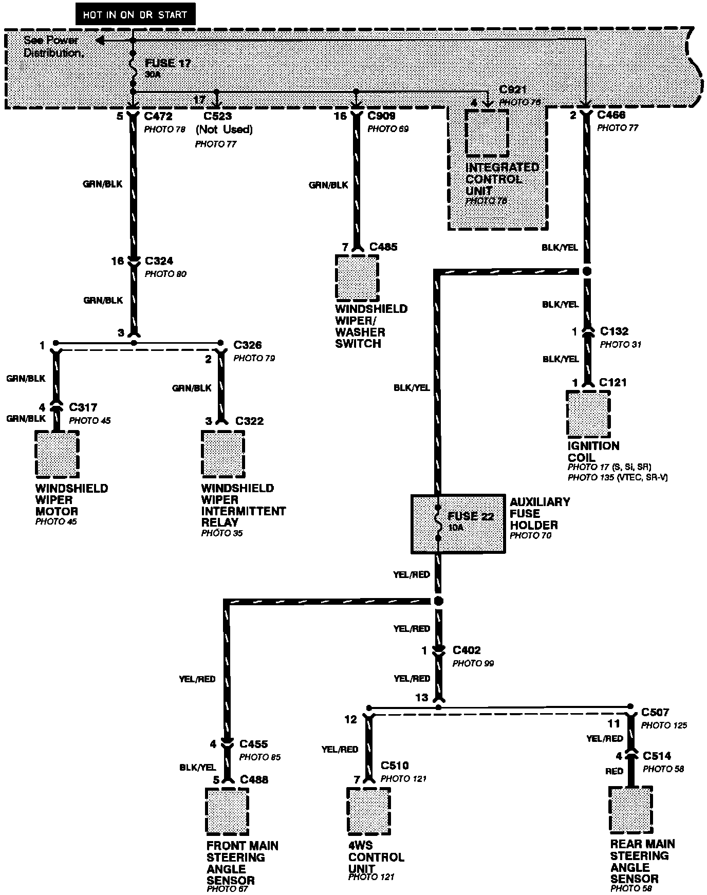 Power Distribution: Fuses And Relays To Components: