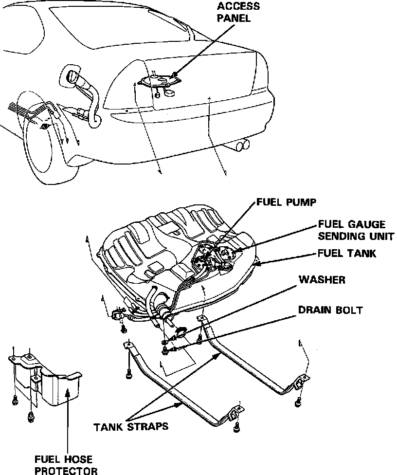 WARNING: Do not smoke while working on the fuel system. Keep open flame away from your work area.1. Block front wheels. Jack up the rear of the car and support with jackstands.